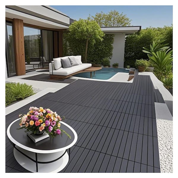 Floor Paver 24 in. x 12 in. Plastic DIY Interlocking PatioDeck Tiles 0.8 in. H All Weather Use in Gray(24-Pack)