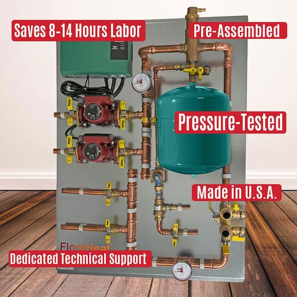 Hydronic Radiant Heat Control Panel-2 Zone, Pre-Assembled System, Underfloor and Home Heating, Efficient, Easy Install