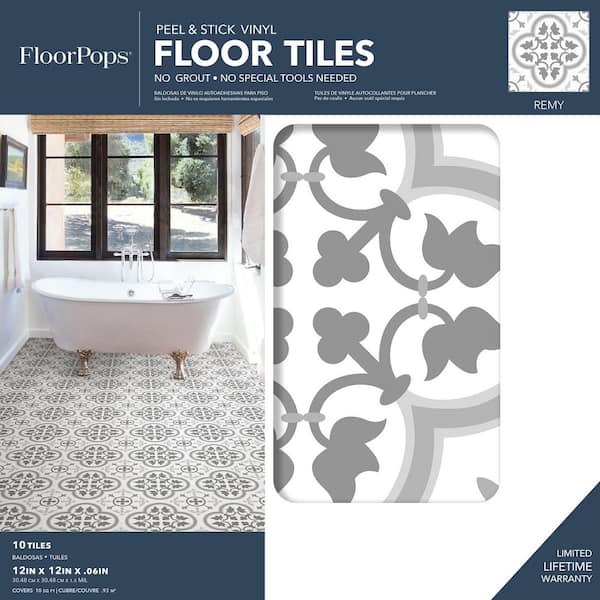 Remy 12 in. W x 12 in. L Grey Peel & Stick Vinyl Tile Flooring (10 sq. ft./case)