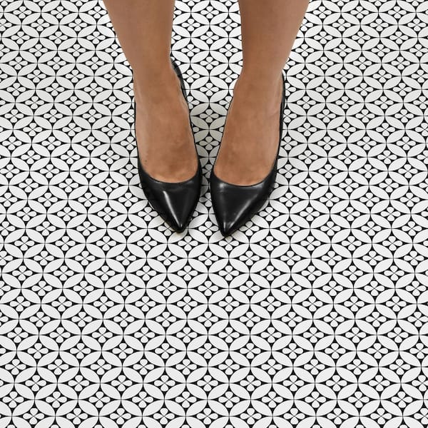 Black and white geometric floor tile with a modern design