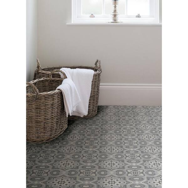 Blue and grey vinyl floor tile with a Bohemian inspired design