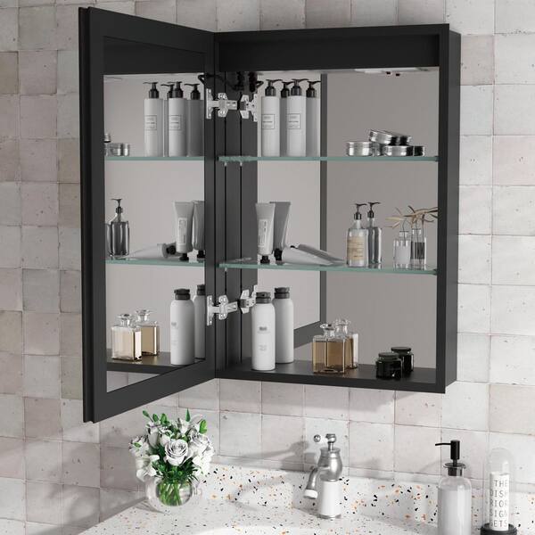 Flora 20 in. W x 28 in. H Rectangular Aluminum Recessed Medicine Cabinet with Mirror and Light, Dimmable, Left Hinge