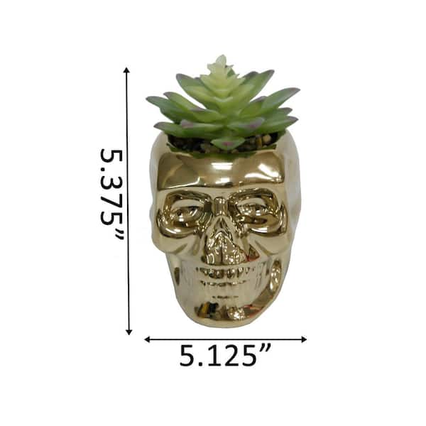 5.1 in. x 4 in. Artificial Succulent in Metallic Gold Ceramic Sugar Skull