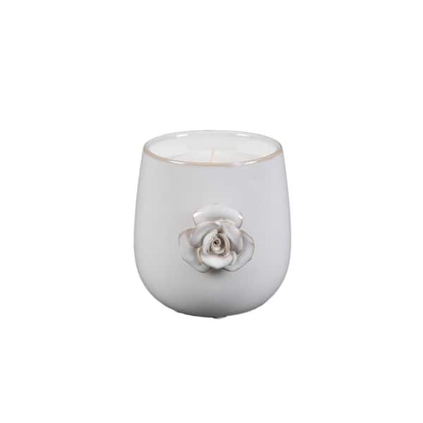 5 in. Ceramic Ivory Flower Candle (20 oz.)