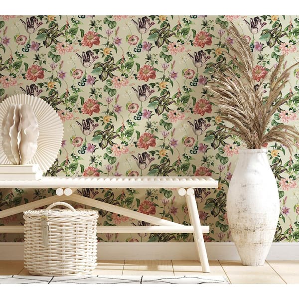 Flora Collection Beige Floral Rhapsody Matte Finish Non-Pasted Vinyl on Non-Woven Wallpaper Roll
