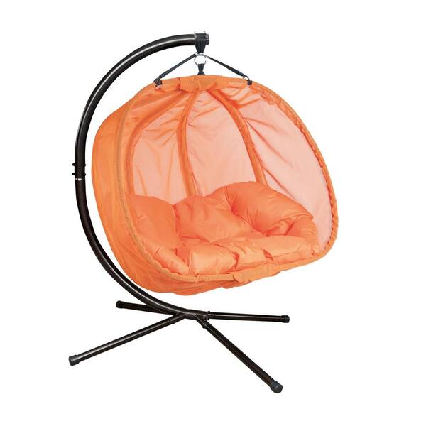 5.5 ft. x 4 ft. W Hanging Pumpkin Patio Swing Hammock with Base in Orange