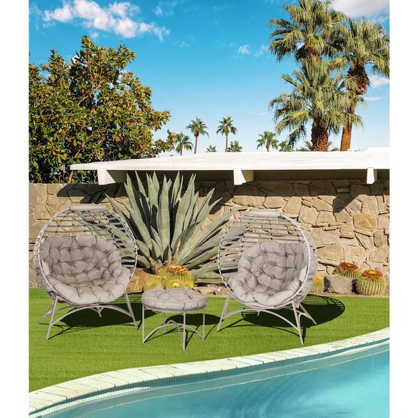 Cozy Patio Ball Chair 3-Piece Metal with Conversation Set in Modern Sand