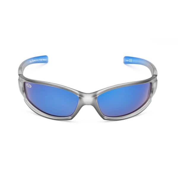 Buoy Jr Angler Polarized Sunglasses Gray Blue Frame with Smoke Blue Mirror Lens