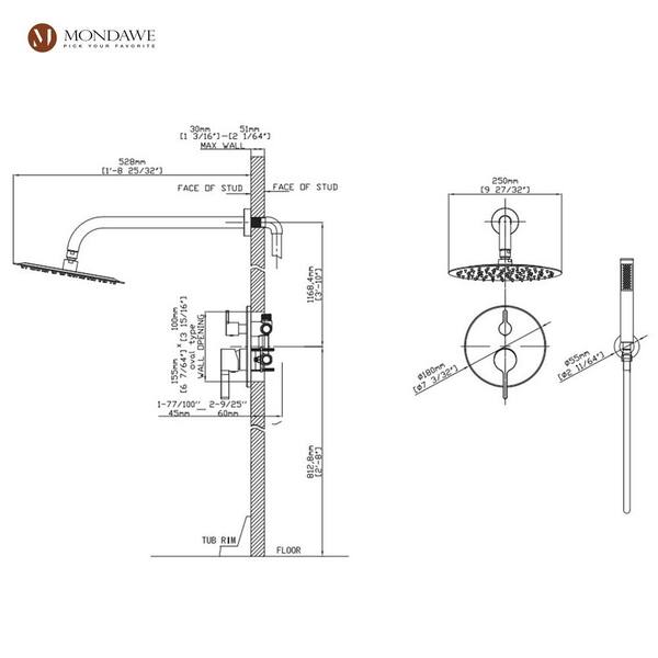 1-Spray 10 in. Wall Mount Dual Shower Head and Handheld Shower Head 1.8 GPM in Brushed Nickel