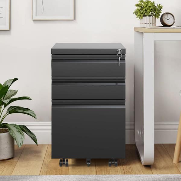 14.57 in. D x 23.62 in. H x 17.32 in. W Assembled Open Cube OrganizerRolling File Cabinet with Lock in Black
