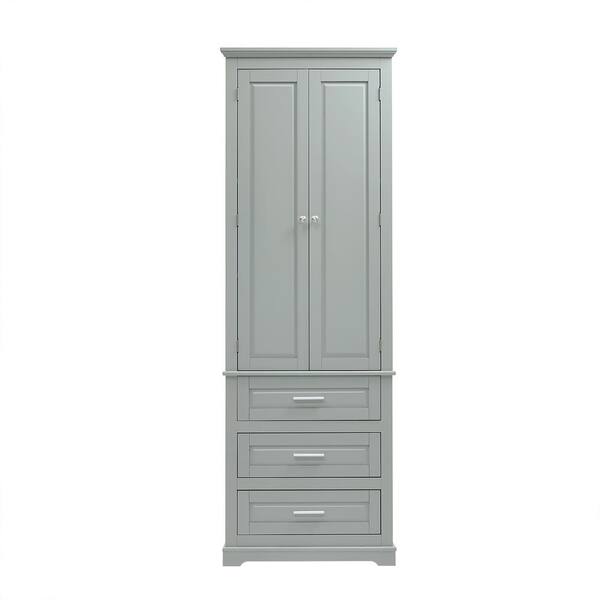 15.70 in. W x 24.00 in. D x 70.00 in. H Tall GrayLinen Cabinet with Drawers in Gray