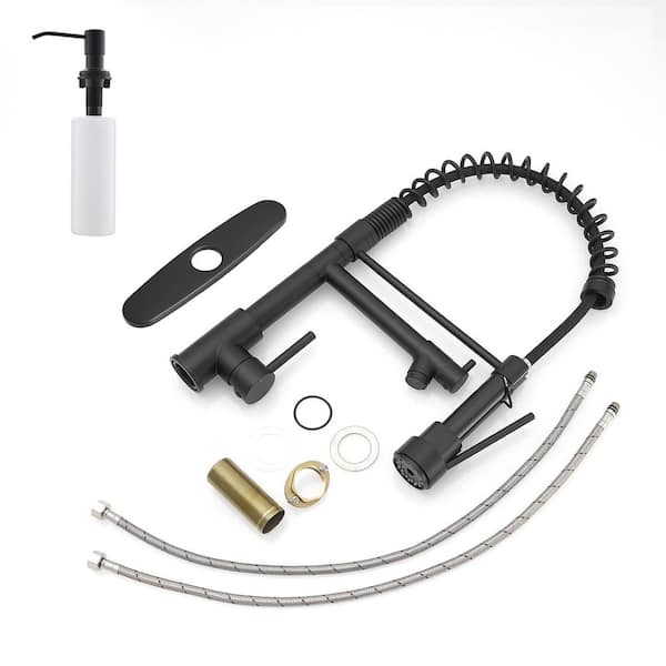 19.49 in. H 2 Modes 304 Stainless Steel Pull Down Sprayer Kitchen Faucet in Black with 360° Spout Swivel
