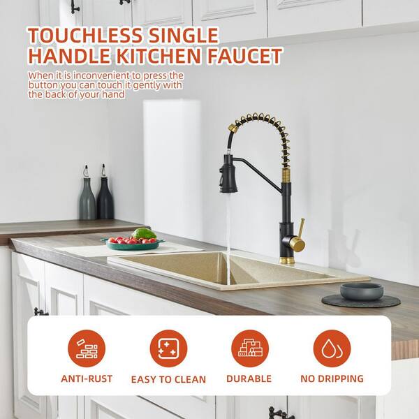 19 in. Pull Out Sprayer Kitchen Faucet with 360° Spout Swivel in Black and Gold Deckplate Not Included