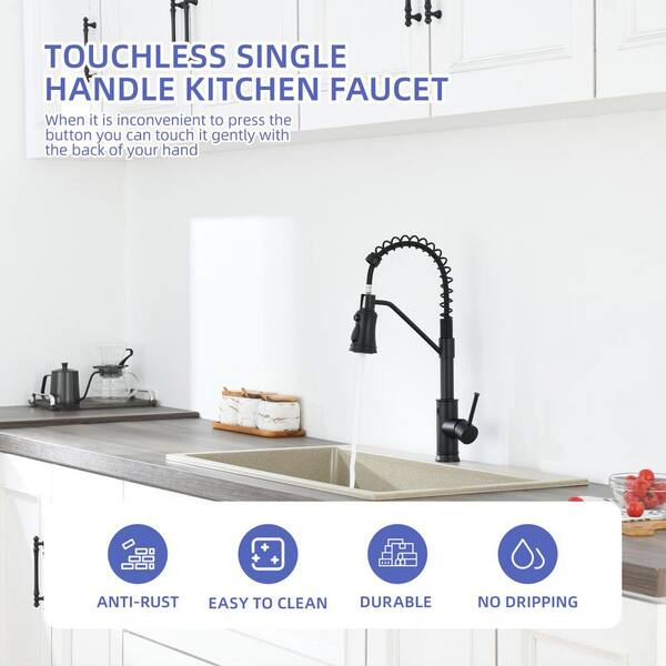 19 in Pull out Touchless Single Handle Kitchen Faucet with Motion Sense and 360° Spout Swivel in Black