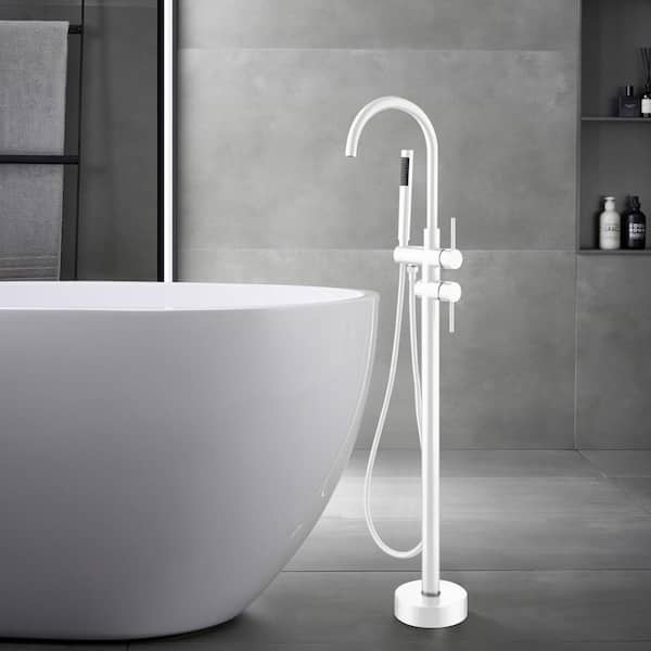 2-Handle Freestanding Tub Faucet Bathtub Filler with Hand Shower in White