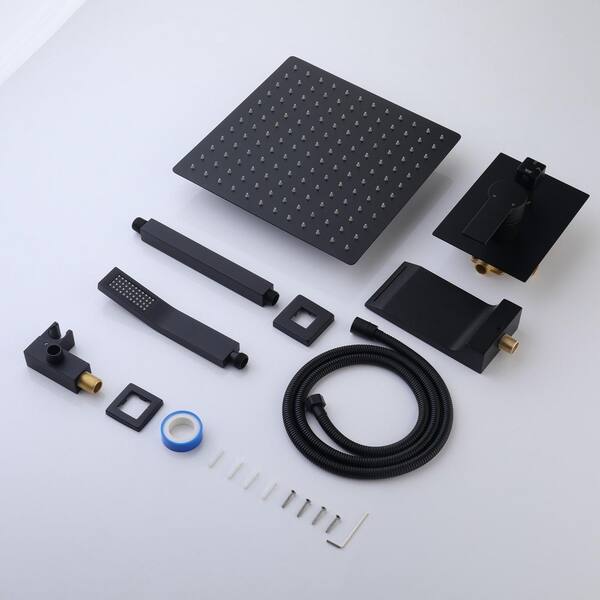 2-Spray 12 in. Bathroom Wall Mounted Shower System with Handheld Spray, Shower Valve and Trim Kit in Matte Black
