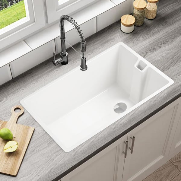 23.60 in. Drop-In Single Bowl White Ceramic Kitchen Sink