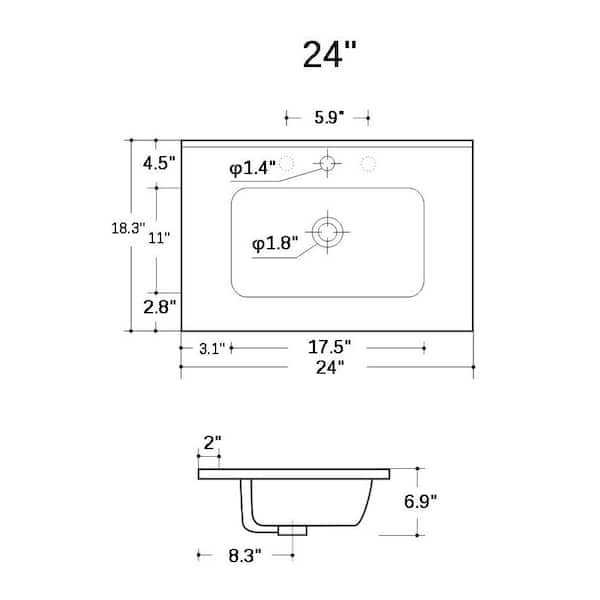 24.01 in. Integrated White Ceramic Basin with 3-Predrilled Faucet Holes, drain assembly NOT included