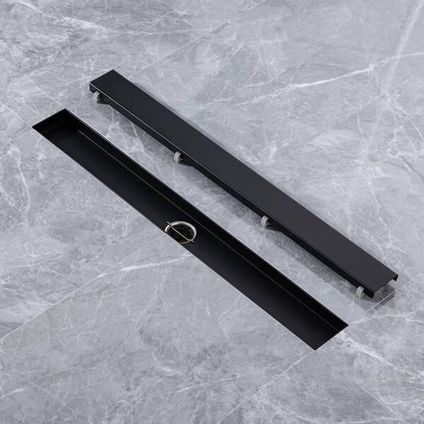 24 in. Stainless Steel Linear Shower Drain in Matte Black with Removable Strainer Basket