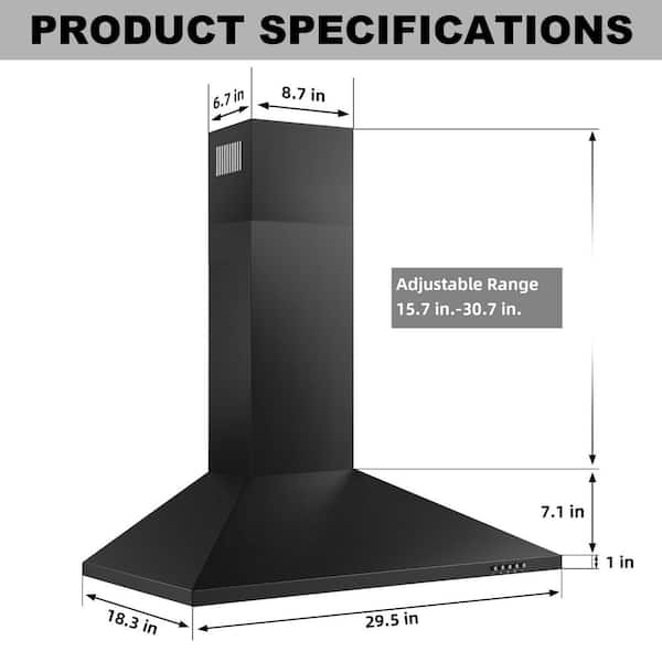30 in. 450 CFM Wall Mount Ducted Insert Range Hood in Black