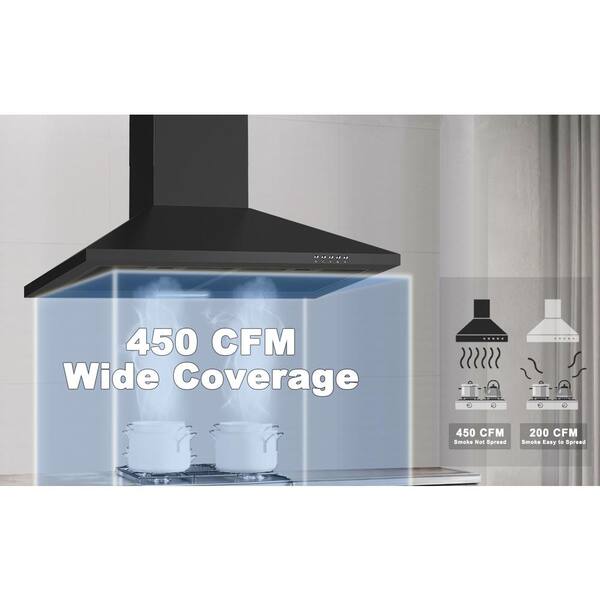 36 in. 450 CFM Wall Mount Ducted Insert Range Hood in Black