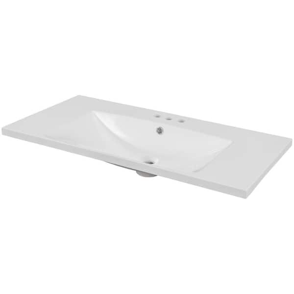 36 in. Undermount Rectangular Bathroom Sink With anti-overflow and 3-Faucet Holes in White