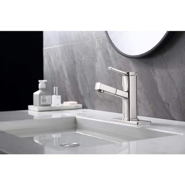 4 in. Centerset Single Handle Bathroom Faucet with Pull Out Sprayer in Brushed Nickel