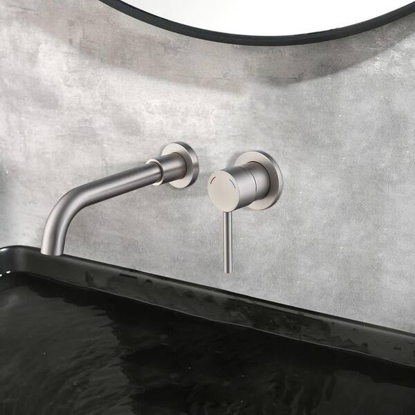 Single Handle 3 Holes Wall Mount Faucet for Bathroom Sink or Bathtub in Brushed Nickel
