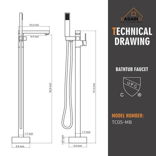 Single-Handle Freestanding Tub Faucet with Handheld Shower in Matte Black