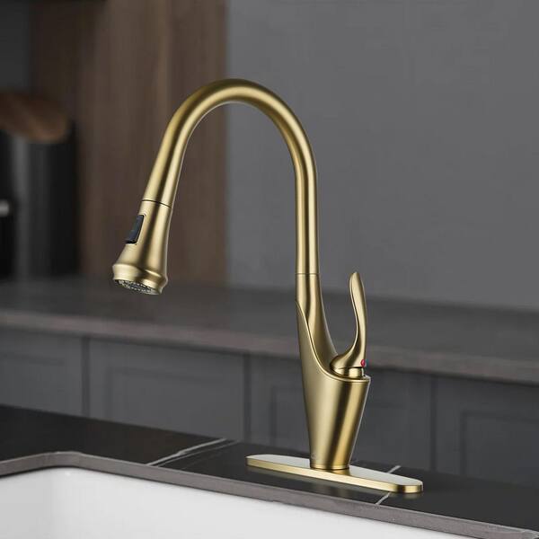 Single Handle Pull Out Sprayer Kitchen Faucet Deckplate Included in Brushed Gold