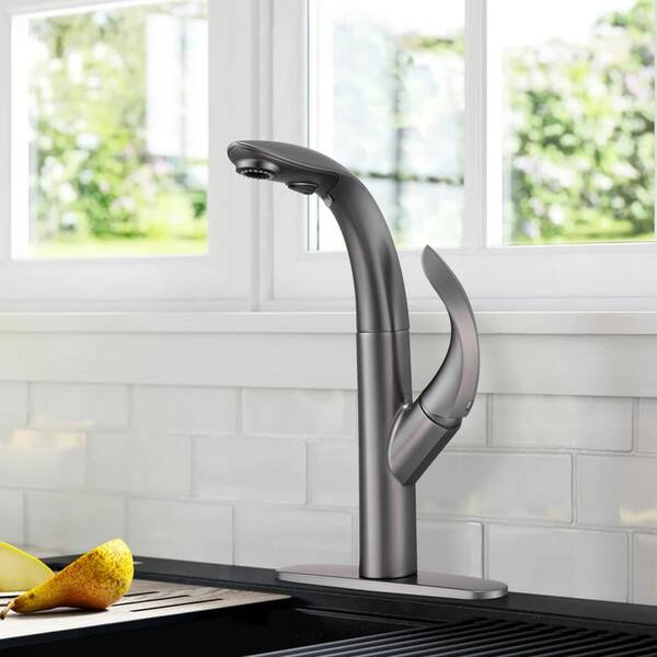 Single Handle Pull Out Sprayer Kitchen Faucet in Gun Black