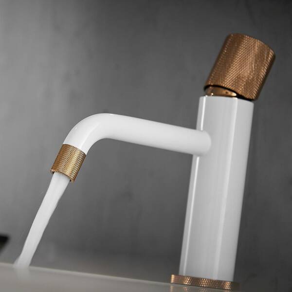 Single Handle Single Hole Deck Mounted Bathroom Faucet in White and Rose Gold