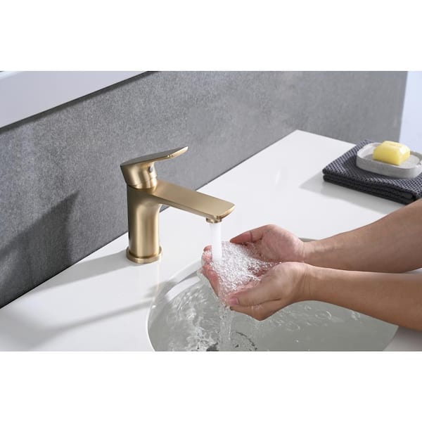 Single Hole with Handle Surface Mounted Bathroom Faucet in Brushed Gold