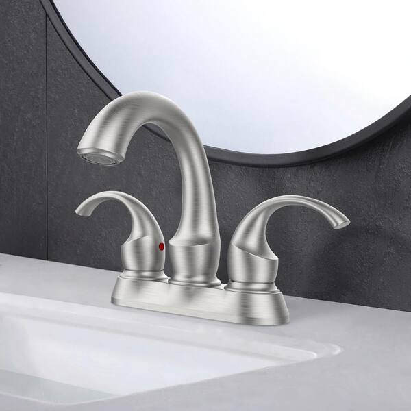 Swan Style 4 in. Centerset Double Handle Bathroom Faucet with Aerator in Brushed Nickel