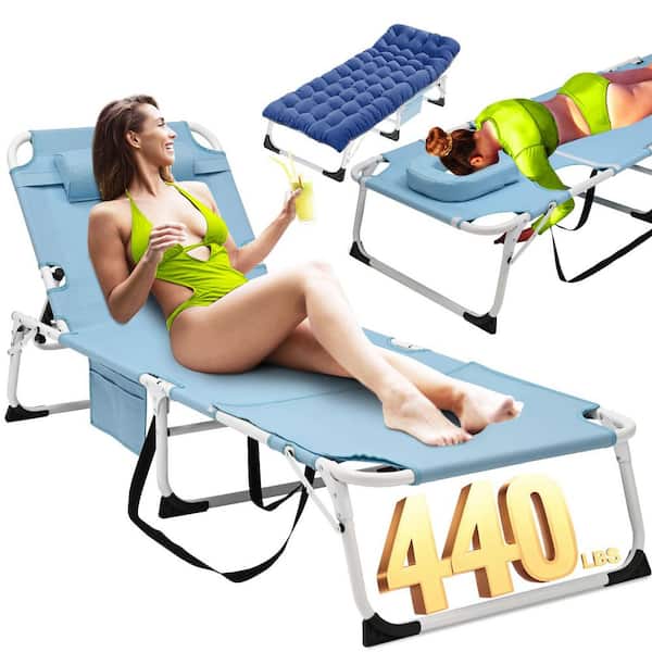 Folding Chaise Lounge Chairs,Steel Frame Sleeping Cots for Adults,for Beach Lawn Camping Pool Sun Tanning,Gray Cushion