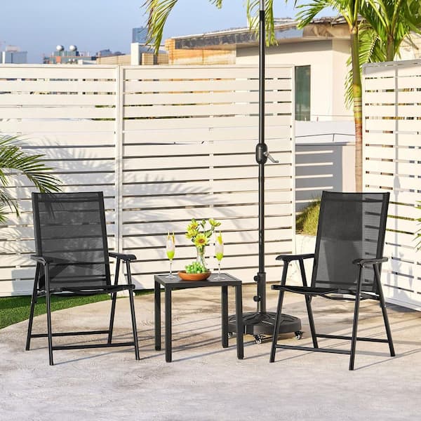 Folding Iron Outdoor Dining Chair in Black (Set of 2) with Armrest