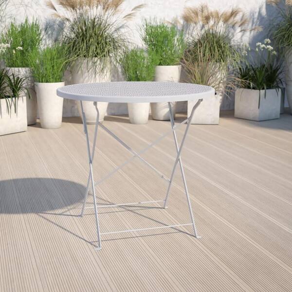 Folding Light Gray Round Metal Outdoor Bistro Table