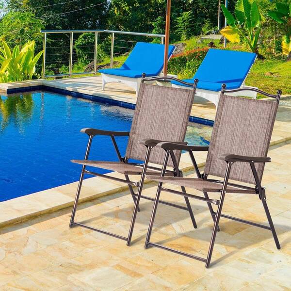 Folding Metal Outdoor Dining Chair in Brown with Armrest (Set of 2)