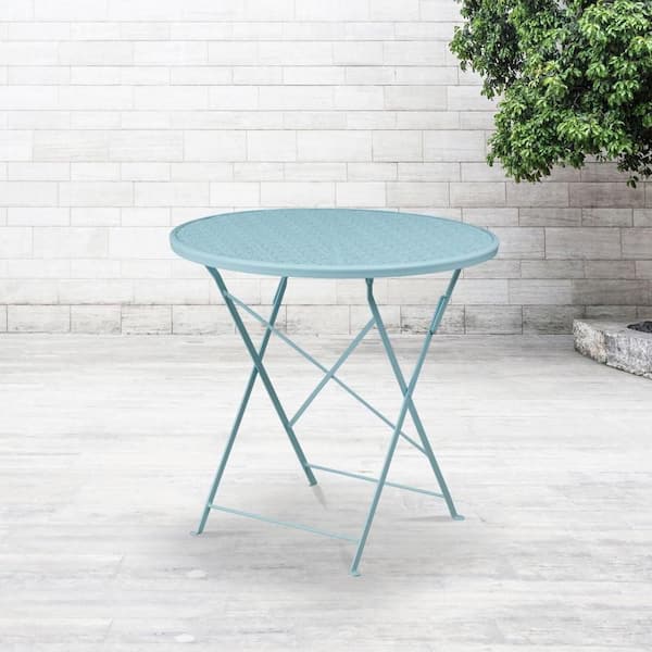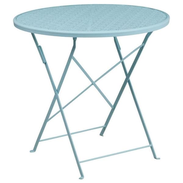 Folding Sky Blue Round Metal Outdoor Bistro Table