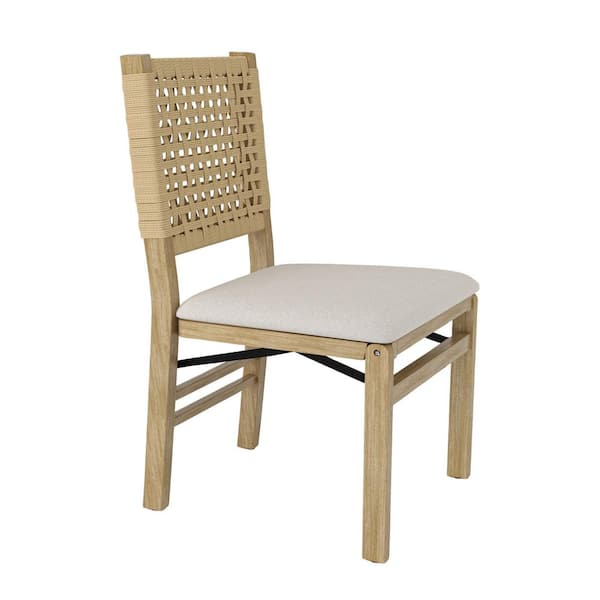 Folding Wooden Stackable Dining Chairs with Camel Padded Seats (Set of 2)
