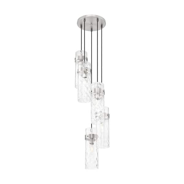 Fontaine 14.5 in. Brushed Nickel 5-Light Chandelier with Clear Water Glass Shades