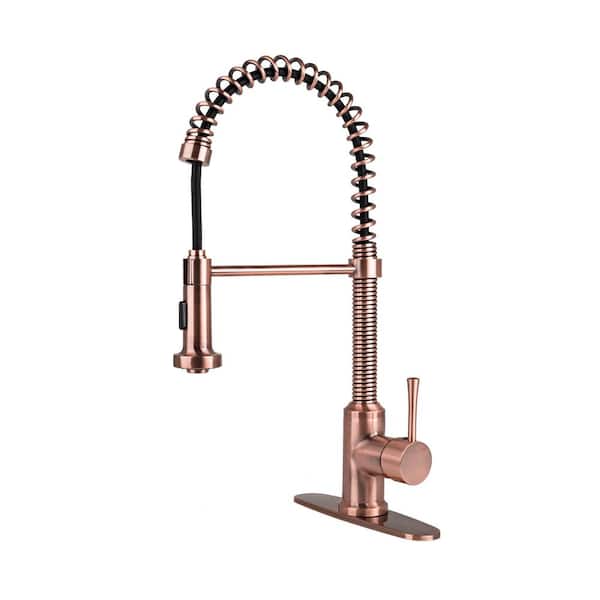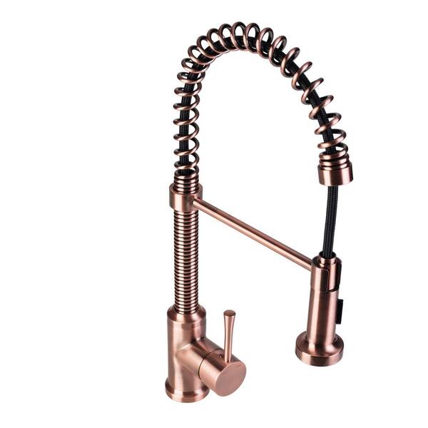 Single-Handle Pull-Down Sprayer Kitchen Faucet with Cone and Flat Spray Heads and Deck Plate in Antique Copper