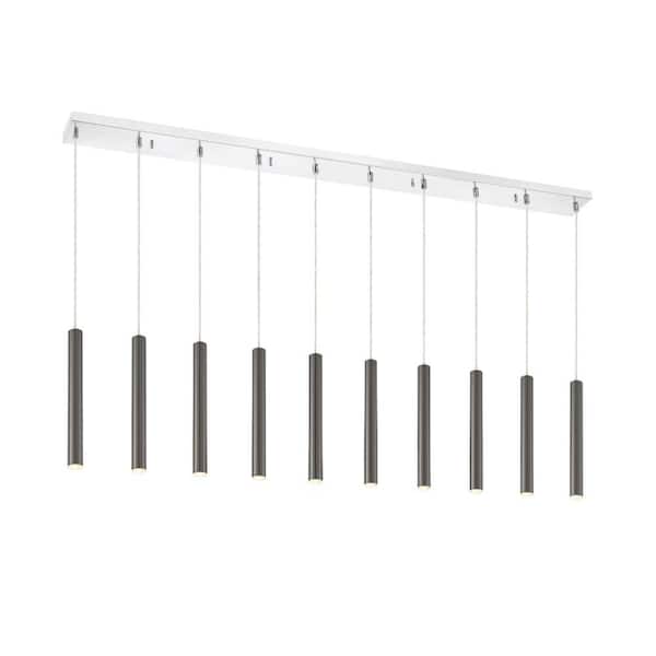 Forest 5-Watt 10-Light Integrated Chrome LED Shaded Chandelier with Pearl Black Steel Shade