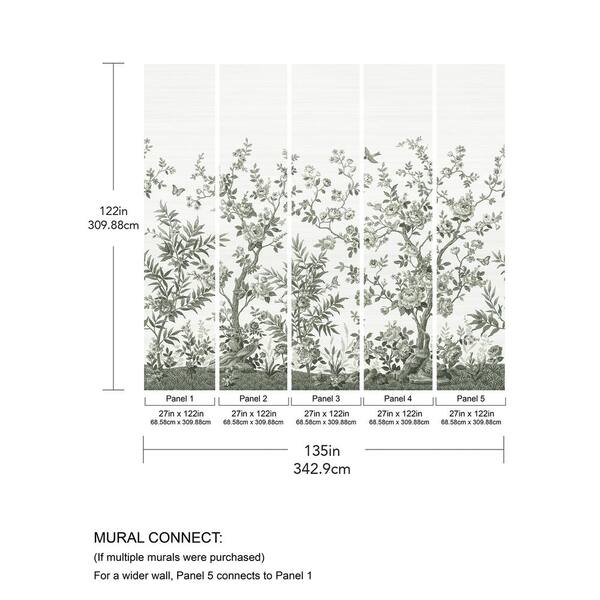 Forest Chinoiserie Sage Green Flowers Wall Mural Sample