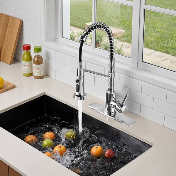 15.63 in Pull Down Sprayer with Kitchen Faucet Single-Handle Kitchen Sink Faucet in Chrome
