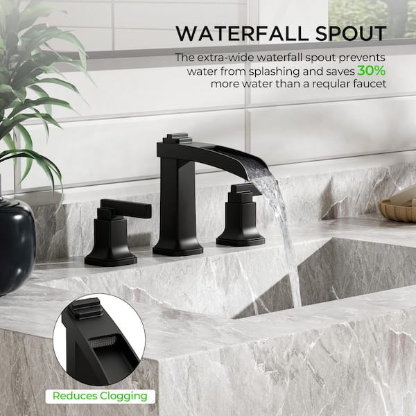 8 in. Widespread Double-Handle Bathroom Faucet with Pop-Up Drain 3-Hole Vanity Sink Faucet in Matte Black