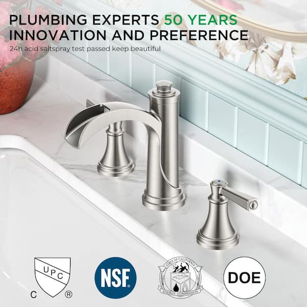 8 in. Widespread Double Handle Mid-Arc Bathroom Faucet with Metal Pop-up Drain in Brushed Nickel