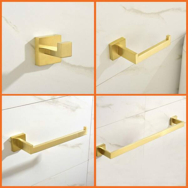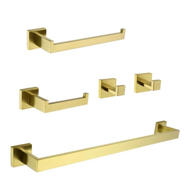 Foris 5-Piece Bath Hardware with Towel Bar*1, Hand Towel Holder*1, Toilet Paper Holder*1, Towel Hook*2 in Brushed Gold