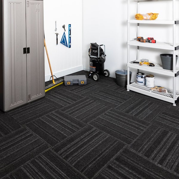 Adirondack - Ice - Black Commercial 24 x 24 in. Peel and Stick Carpet Tile Square (60 sq. ft.)