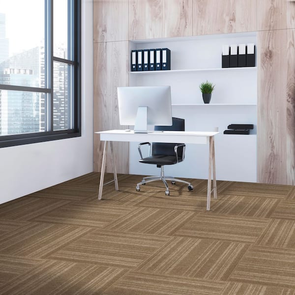 Adirondack - Taupe - Brown Commercial 24 x 24 in. Peel and Stick Carpet Tile Square (60 sq. ft.)